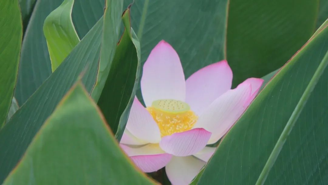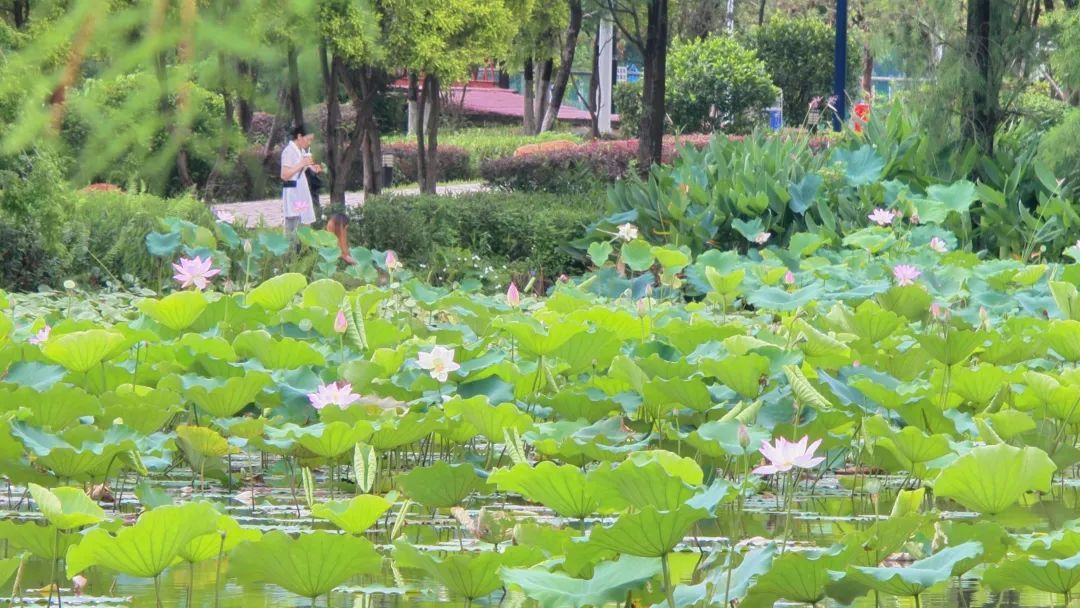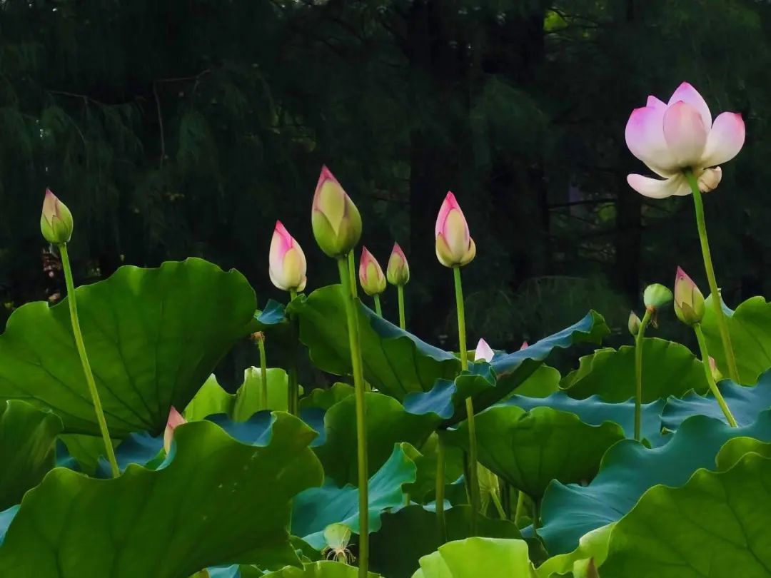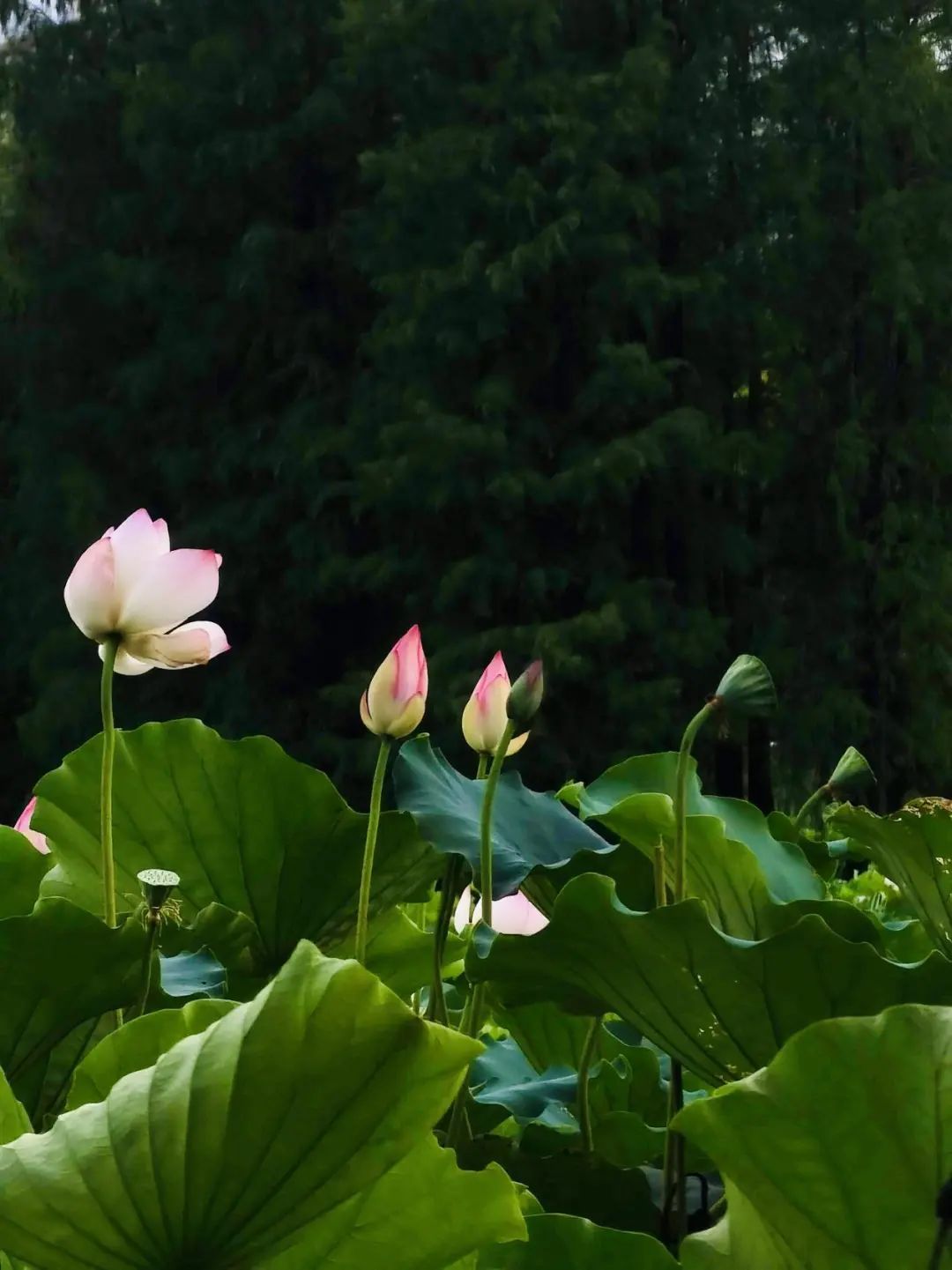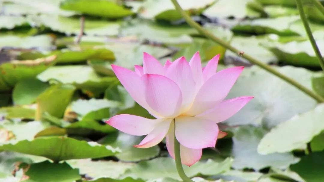 风动莲香,一池清欢荷叶田田,托起初绽的粉白偶有蜻蜓点水,惊破满塘晨露